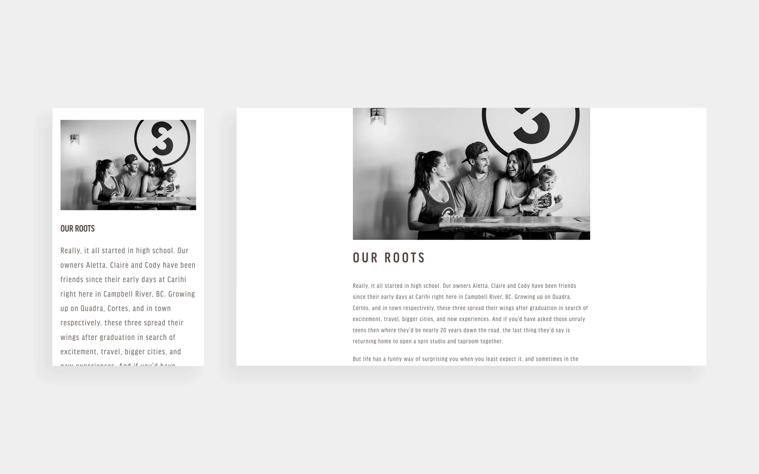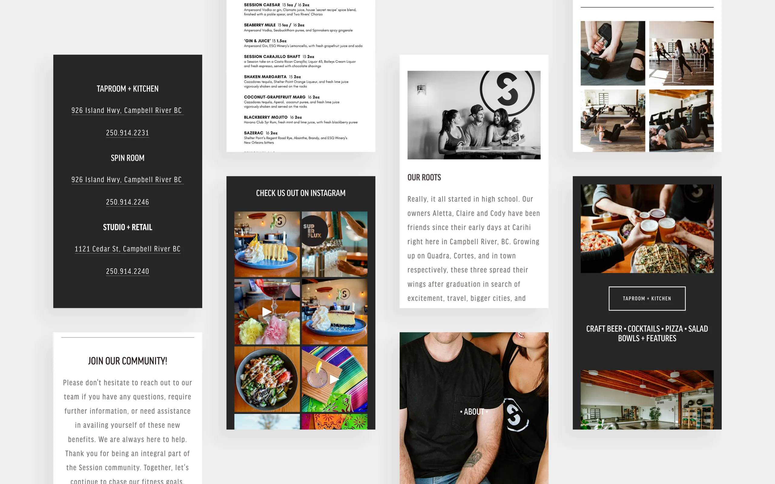 Often we work with clients who already have a website set up, and just need help with design and updating. As a two-part business, Session needed clear and descriptive messaging, simple navigation, and strong imagery to ensure visitors could find what they needed to quickly and easily. What was once a simple landing page was transformed into a fully customized Squarespace website showcasing their story, menus, schedule, online bookings, and much more.